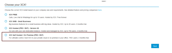 what is 3cx 3cx is a software based private branch exchange (pbx) system that offers a comprehensive communication solution for businesses it enables seamless voice, video, and chat communications through voip (voice over internet protocol), providing a flexible and cost effective alternative to traditional phone systems designed to be user friendly, 3cx can be deployed on premises or in the cloud, supporting a range of devices and platforms, including desktop computers, smartphones, and web browsers key features include call routing, conferencing, voicemail, instant messaging, and crm integration, making it a robust choice for enhancing business communication and collaboration getting started with 3cx deployment log in to https //portal antyxsoft io and during the docid\ ciydd3c exqsdqonp7uev at the select template section click on the market place app tab marketplace app selection select the ready to go 3cx template from the list of available templates and deploy it 3cx app selection accessing the 3cx admin dashboard obtain the configuration file once the instance is deployed, login to your 3cx account choose the 3cx self hosted / οn premise (pro / ent) option at the end of the process, you will receive a link to the configuration file you can either copy the link or download the file for more information, visit https //www 3cx com/docs/manual/ upload the configuration file access your 3cx instance option 1 use a web browser to go to http //\<ip of machine> 5015 (the private ip of the machine will show up you have to use the public ip of your machine with the given port) option 2 alternatively, use the command line interface if provided by your cloud service complete the installation follow the prompts to upload the configuration file once the installation is complete, you will be prompted to set your password login to 3cx use the email address you registered with to login to the 3cx pbx system