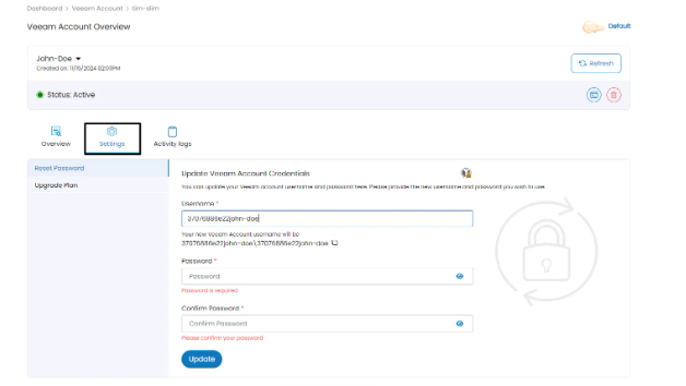Set your new password and click on the Update button. Done! You have updated your Veeam account password.