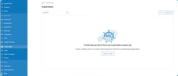 Step 1: Navigate to the Kubernetes tab on the left side of the menu and click on the Create Cluster option