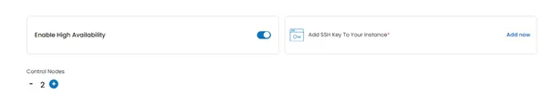 Step 4: If High Availability option is needed for Kubernetes Control Plane, choose option and the number of Control nodes. Don’t forget to add your Public Key to be able to connect to your Cluster.