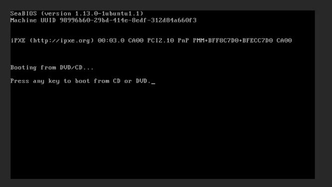 Note: If the system doesn’t boot from the ISO, let the operating system load normally. Then restart the VM from within the OS. On reboot, you should get the BIOS screen — press any key to boot from the ISO