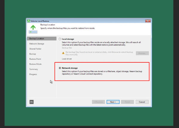 Then proceed with the Network Storage option: