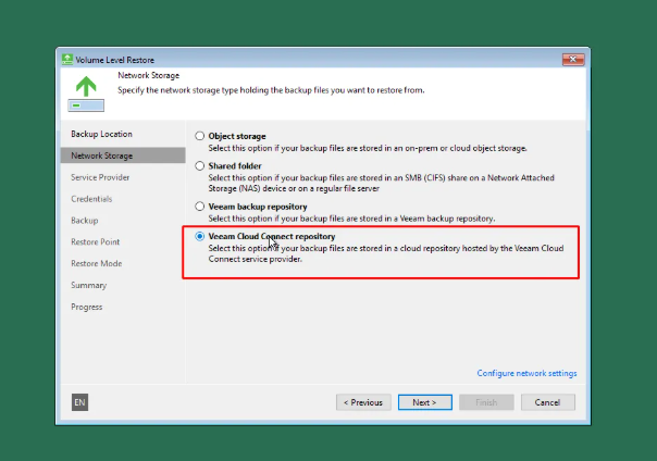 - Select the Veeam Cloud Connect Repository: