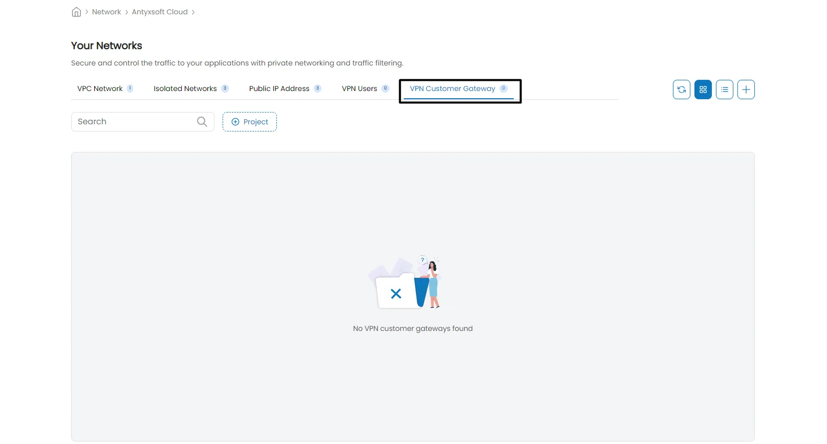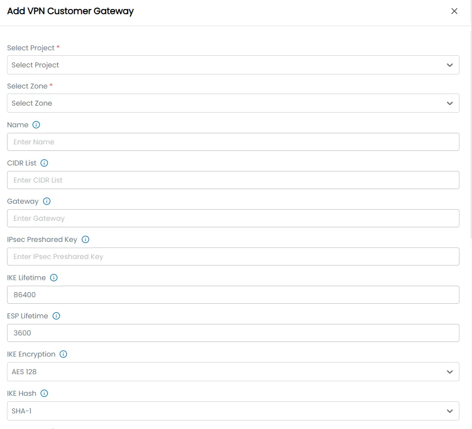 what is a vpn customer gateway? in the antyxsoft cloud platform , a vpn customer gateway is a configuration that allows secure connectivity between your on premises network (or another external network) and your vpc it acts as the endpoint on the customer’s side for a vpn connection, enabling encrypted communication over the internet by setting up a vpn customer gateway , you can establish a secure ipsec tunnel between your cloud environment and your external network, facilitating safe data transfer, remote access, and hybrid cloud setups accesing the vpn customer gateway settings to create an vpn gateway follow these steps login to the https //portal antyxsoft io from the side panel click on networks navigate to vpn customer gateway when you click on the plus (+) button located on the top right a you'll see a form where you'll have to enter the required details for the vpn gateway creation project select the project of which the gateway will be made for zone select the zone where the gateway will be made at name enter the name of the newly created vpn customer gateway cidr list the guest cidr list of the remote subnets enter a cidr or a comma separated list of cidrs ensure that a guest cidr list is not overlapped with the vpc’s cidr, or another guest cidr the cidr must be rfc1918 compliant gateway the ip address for the remote gateway ipsec preshared key preshared keying is a method where the endpoints of the vpn share a secret key this key value is used to authenticate the customer gateway and the vpc vpn gateway to each other the sequence cannot contain a newline or double quote ike lifetime the phase 1 lifetime of the security association in seconds default is 86400 seconds (1 day) whenever the time expires, a new phase 1 exchange is performed esp lifetime the phase 2 lifetime of the security association in seconds default is 3600 seconds (1 hour) whenever the value is exceeded, a re key is initiated to provide a new ipsec encryption and authentication session keys ike encryption the internet key exchange (ike) policy for phase 1 ike hash the ike hash for phase 1 ike version select the ike version that will be used ike dh set the diffie hellman group number a public key cryptography protocol which allows two parties to establish a shared secret over an insecure communications channel perfect forward secrecy perfect forward secrecy (or pfs) is the property that ensures that a session key derived from a set of long term public and private keys will not be compromised this property enforces a new diffie hellman key exchange it provides the keying material that has greater key material life and thereby greater resistance to cryptographic attacks esp encryption encapsulating security payload (esp) algorithm within phase 2 esp hash encapsulating security payload (esp) hash for phase 2 dead pear detection a method to detect an unavailable internet key exchange (ike) peer select this option if you want the virtual router to query the liveliness of its ike peer at regular intervals it’s recommended to have the same configuration of dpd on both side of vpn connection force encapsulation force encapsulation for nat traversal split connections route specific traffic (cidr list option) through the vpn, while other traffic accesses the internet directly for improved performance and flexibility esp and ike details must be the same on both sites project and zone can't be changed after creation! make sure that the vpc you want to make the ipsec connection to is in the same zone as the vpn customer gateway once you enter the required details click on the save button connecting to a site to site vpn after creating a vpn customer gateway to establish the connection between the sites you will have to do the following navigate to the target vpc click on the vpn connections menu click on the + add site to site vpn button located at the top right and select the vpn customer gateway that you created for the vpc once you click on save the vpn customer gateway will be added to the vpc you can view the nessesary infomation to connect to it also from actions you can delete or reset the connection